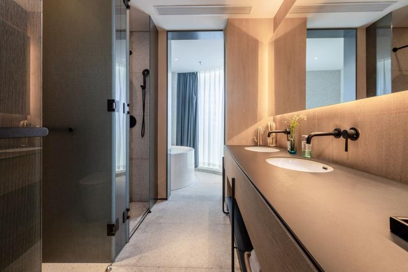 酒店位于南湖街道友谊路,紧邻地铁向西村D2出口步行约3分钟、国贸站A出口步行约5分钟,方便的地理位置与周边完善的休闲娱乐配套,无论消费者休息与商旅都能享受深圳的多元文化。 酒店整体设计是由北京著名的建筑设计事务所About Architecture.打造,以现代经典(Contemporary Design)为风格走向,在简洁的颜色与线条中架构出现代空间感,营造出低调沉稳的氛围。 酒店配备先进的高级客房,以打造私人豪宅为空间概念,规划出强调各具北欧风格的生活机能客房,自然柔和的植物生态墙与木质地板呈现居家温暖的氛围。开放式的空间格局,藉由绿植隔间皆可自由划分出睡房、卫浴与梳化等私人领域,呈现舒适安心的住房空间感。不仅呼应饭店整体新北欧主调,更在空间功能与设计细节融合中西元素,寝室空间以木头原生态艺术装置,流畅地演译出当代低调奢华美学设计创意。墙魔鬼般藏于细节,墙的厚度最为关键,关系着成本与造价,盈舍精心为顾客以30公分的砖墙打造上佳的隔音效果。更注重淋浴体验,引进较新冷热水系统设备,为体现睡眠品质,更是细心选择,优质羽絨被以及帆船饭店等级枕头,让盈奢的顾客有宾至如归的感受。藉由这些细节展现盈舍特有的,贴心且不受干扰的服务风格。