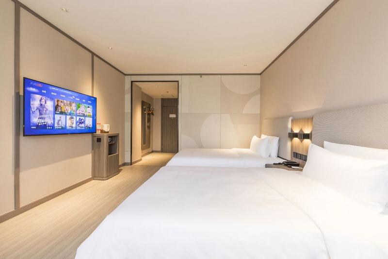 汉庭宿迁宝龙广场酒店位于宿迁市市中心宝龙广场,周边配套设施齐全,有苏果超市,红立A+超市等大型超市,临近楚街、宝龙广场、水韵城、金鹰购物广场、义乌商贸城等购物中心,毗邻工商银行、建设银行、交通银行等银行,还有宿迁市人民医院、宿迁市中医院等大型医院。酒店周边交通便利,临近项王故里景区,离宿迁汽车站约5公里。 酒店拥有高级双床房,高级大床房,豪华双床房,套房等简约时尚的房型,门口就有停车场,配备自助早餐厅,niiice coffe,书香汉庭,超大智能电视,免费商务区,免费无线上网,自助洗衣房,自助寄存柜等设施服务并提供免费季节性饮料。