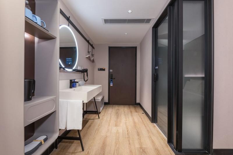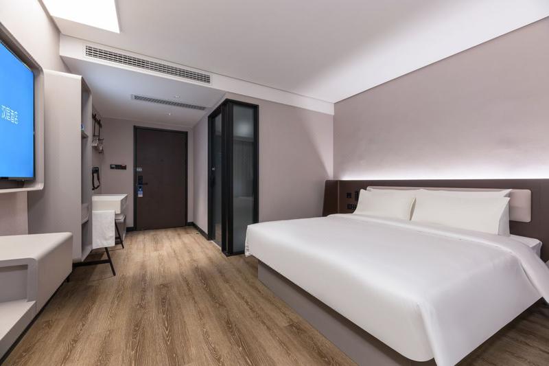 汉庭让人眼睛一亮,全新升级、崭新力作,以低饱和的舒适配色及柔美利落的线条,诠释“实用主义”的美学理念,智能高科技设备,打造30s入住、机器人送物、24hr洗衣、图书借阅等6大自助体验,高颜高效。摊点式早餐呈现国民本味,明档面点暖心暖胃;客用品、家具舒适度再升级,符合人体工学的同时注入环保、科技理念,为客人带来“住得起的好品质、看得到的好设计”。