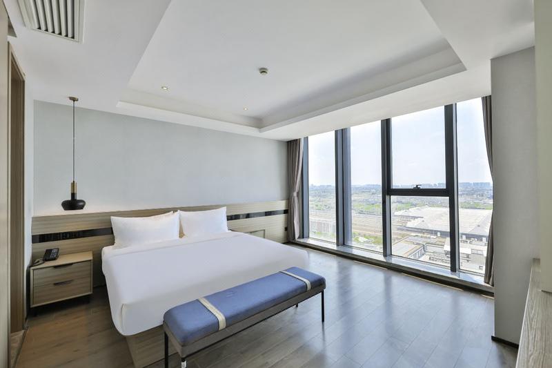 酒店位于集旅游、商业、交通为一体的苏州铁路交通枢纽火车站北广场。酒店毗邻虎丘,拙政园、狮子林等苏州园林,紧邻苏州万达广场和苏州义务国际小商品交易中心,靠近苏州石路商圈,与苏州最着名的观前街、平江路、山塘古镇等仅10分钟路程,距离地铁二号线、四号线苏州站点仅几步之遥,可快速到达木渎、观前街等主要旅游景点,交通非常便利。 酒店是以舒适、居家商务为主题的公寓型酒店,共有7层客房,可饱览苏城美景。房间既配置了满足商务需求的高速宽带网络、蒸汽烫斗、卫星及平板液晶电视,还拥有简单智能的厨房设备、舒适完整的家庭设施。其中套间还提供全套定制卫浴产品、安置欧式独立浴缸,为你营造舒适高雅的居住氛围。酒店以齐全的配设、温馨的氛围、周全的服务,成为长住、短居的理想之选。
