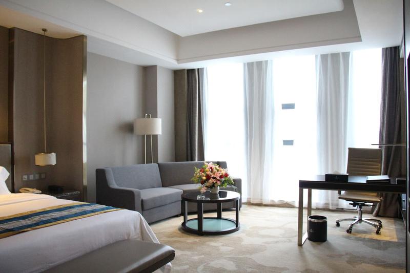 鹰潭枫丹白露酒店傲踞龙虎山必经之路,位于月湖区炬能路,毗邻鹰潭市体育馆和月湖岩公园,轻松通达繁华的商业区及各大旅游景点,汽车站近在咫尺,距离鹰潭南高速路口约10分钟车程,抵达龙虎山景区约15分钟车程;酒店停车便利,共有地面地下近300个免费停车位。 酒店集商务、会议、旅游、度假、休闲于一体,主体建筑面积3万平米,分地上21层地下2层共计23层,客房房型丰富,现代简约,多种房型满足不同住宿需求。 会议及活动场地超过1600平方米, 其中包括可容纳400余位宾客的多功能宴会厅、5间自然采光充沛的会议室,设施先进,服务专业,是高端会议与中西宴会的理想场所。 豪华的中餐包房、西餐厅及大堂吧提供精品粤菜、赣菜、养生菜、国际美食及世界佳酿。 康乐会所、精品购物中心、茶艺室、红酒屋、棋牌室、健身房、空中游泳池、SPA馆等配套设施一应俱全。