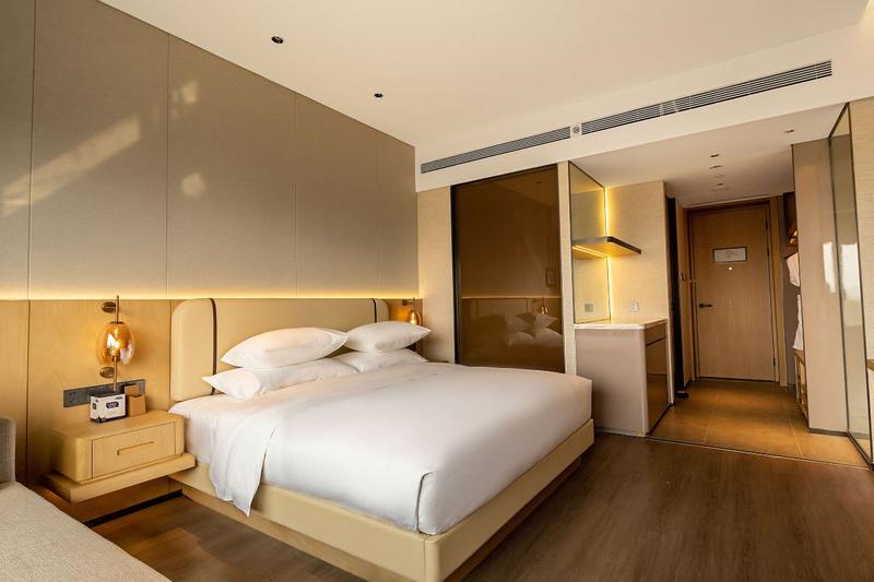 六安晟诚开元名庭酒店位于锦成·文庙街,毗邻月亮岛湖畔。设计风格以新中式浪漫主义为根底,将中式传统的风格特点用现代的视觉语言来唯美呈现。不仅有高端典雅客房,大堂吧,康乐,特色早餐厅等区域,同时配备14间特色包厢,11个不同风格的婚礼堂及多功能厅,是满足各类宴会集聚各式风格婚礼堂特色的高端商务酒店。