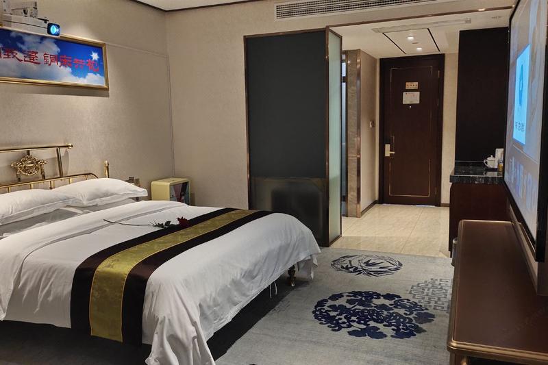 铜陵朱府铜艺大酒店位于铜陵市北京西路北斗星城。 这是一家由铜作为主题设计的大酒店,门面雨棚豪华贵气,独具匠心的设计,整个大雨棚没有斜拉和柱支撑,仿佛有神力支撑着。大堂的古典吊顶华丽而不雍容,立体锻花贴金斗拱点缀其中,独具匠心。吧台背景一副自然造化的壁画咉入眼帘,二亿四千万年前的海百合化石拓印铸成,赋予了古老海百合时代铜魂。壁画左上角寥寥数语刻划出壁画的来之不易,海百合意为“百年好合”,铜铸也为“同心”之意,是情侣留影和婚嫁的打卡圣地。