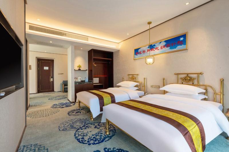铜陵朱府铜艺大酒店位于铜陵市北京西路北斗星城。 这是一家由铜作为主题设计的大酒店,门面雨棚豪华贵气,独具匠心的设计,整个大雨棚没有斜拉和柱支撑,仿佛有神力支撑着。大堂的古典吊顶华丽而不雍容,立体锻花贴金斗拱点缀其中,独具匠心。吧台背景一副自然造化的壁画咉入眼帘,二亿四千万年前的海百合化石拓印铸成,赋予了古老海百合时代铜魂。壁画左上角寥寥数语刻划出壁画的来之不易,海百合意为“百年好合”,铜铸也为“同心”之意,是情侣留影和婚嫁的打卡圣地。
