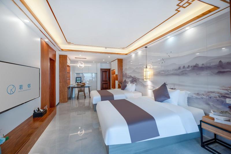 本店位于福建省福州市连江县定海湾旅游区内,是广东若邻酒店管理有限公司国内第18个自营酒店,福州分公司第1个自营酒店。酒店依托地区文旅发展,结合当地特色旅游文化,在定海湾景区的指导下,致力打造一所度假酒店。酒店规划打造特色客房,配套餐厅、会议室、健身房、儿童乐园等设施。酒店依靠地理布局优势,将陆续投入资金,升级巴厘岛网红元素的服务或设施,包含天空之门、悬崖咖啡吧、漂浮泳池、沙滩夜景天幕、旅拍基地等,展望打造成当地旅游新名片。 酒店规划投入市场使用的客房,以简约时尚作为客房建设的基调,融入中式古典、原木北欧和海岛元素。设计有单间、2房1厅、3房1厅、4房1厅房型。客房配备迷你吧,休闲区,拥有阔越海景大阳台,户户面朝大海,让每个旅客在休憩时间均能领略到定海湾美丽的海景