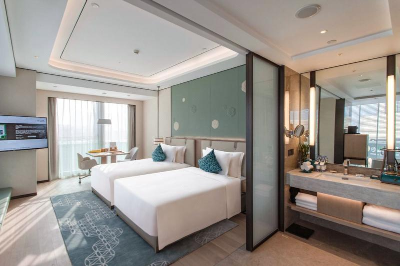 酒店位于渝北区未来最繁华的金州商属核心区域,即照母山首席圈层社交中心。酒店交通便捷通达,步行约5分钟可至轻轨5号线。 酒店拥有三百余间设计典雅的客房,空间舒适宽敞,每间客房均配备席Sleemon床垫,套房配备戴森吹风及无线充电等先进设施设备。 会议空间共3500平米,包含7间多功能厅,1间1900平米,空高8.5米的无柱大宴会厅及860平米无柱小宴会厅;提供先进的音响设备,同声传译及LED屏,可满足不同会议需求。 5间风格独特说的餐厅及酒吧,为品味人士提供环球珍馐美馔及至高的餐饮享受。另设有24小时健身中心,首创可开合天窗游泳池,以及行政酒廊,让您尽享舒适闲暇时光。
