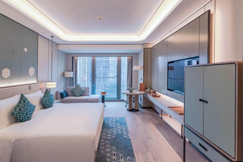 酒店位于渝北区未来最繁华的金州商属核心区域,即照母山首席圈层社交中心。酒店交通便捷通达,步行约5分钟可至轻轨5号线。 酒店拥有三百余间设计典雅的客房,空间舒适宽敞,每间客房均配备席Sleemon床垫,套房配备戴森吹风及无线充电等先进设施设备。 会议空间共3500平米,包含7间多功能厅,1间1900平米,空高8.5米的无柱大宴会厅及860平米无柱小宴会厅;提供先进的音响设备,同声传译及LED屏,可满足不同会议需求。 5间风格独特说的餐厅及酒吧,为品味人士提供环球珍馐美馔及至高的餐饮享受。另设有24小时健身中心,首创可开合天窗游泳池,以及行政酒廊,让您尽享舒适闲暇时光。