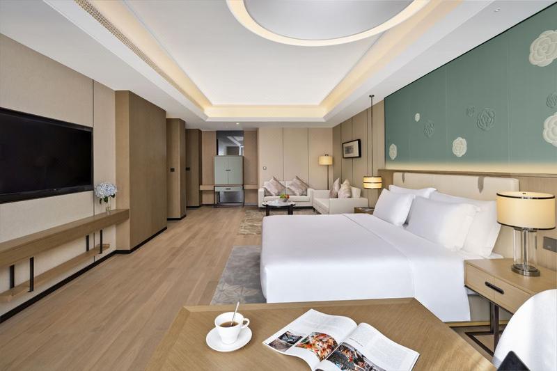 酒店位于渝北区未来最繁华的金州商属核心区域,即照母山首席圈层社交中心。酒店交通便捷通达,步行约5分钟可至轻轨5号线。 酒店拥有三百余间设计典雅的客房,空间舒适宽敞,每间客房均配备席Sleemon床垫,套房配备戴森吹风及无线充电等先进设施设备。 会议空间共3500平米,包含7间多功能厅,1间1900平米,空高8.5米的无柱大宴会厅及860平米无柱小宴会厅;提供先进的音响设备,同声传译及LED屏,可满足不同会议需求。 5间风格独特说的餐厅及酒吧,为品味人士提供环球珍馐美馔及至高的餐饮享受。另设有24小时健身中心,首创可开合天窗游泳池,以及行政酒廊,让您尽享舒适闲暇时光。