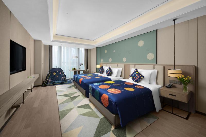 酒店位于渝北区未来最繁华的金州商属核心区域,即照母山首席圈层社交中心。酒店交通便捷通达,步行约5分钟可至轻轨5号线。 酒店拥有三百余间设计典雅的客房,空间舒适宽敞,每间客房均配备席Sleemon床垫,套房配备戴森吹风及无线充电等先进设施设备。 会议空间共3500平米,包含7间多功能厅,1间1900平米,空高8.5米的无柱大宴会厅及860平米无柱小宴会厅;提供先进的音响设备,同声传译及LED屏,可满足不同会议需求。 5间风格独特说的餐厅及酒吧,为品味人士提供环球珍馐美馔及至高的餐饮享受。另设有24小时健身中心,首创可开合天窗游泳池,以及行政酒廊,让您尽享舒适闲暇时光。