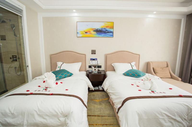 玉树青赣大酒店位于青海省玉树州结古大道,国家电网旁。本酒店是按标准星级标准建造,建筑面积 1万余平方米, 客房面积约 5千余平方米,可提供2百余床位。餐厅面积约3百余平方米,可提供自助餐、团餐、点餐、小型聚餐等。停车场面积约2千余平方米,可提供近40余车位。酒店主营精品客房、特色餐饮并配备丰富的营养早餐厅及自助休闲区。酒店采用现代中式的装修风格,配以各类设备,营造温馨舒适的氛围,精心打造出各类单间、标间、机麻房、套房及家庭房共99间。房间内干湿分区,分隔有序,再搭配智能控制设备,氧气呼吸机让您在旅途的疲惫中,感受现代化的舒适与便捷。悠然尘世间,最美青赣大酒店!我们愿意用最贴心的服务和真诚的笑容,迎接您的光临。