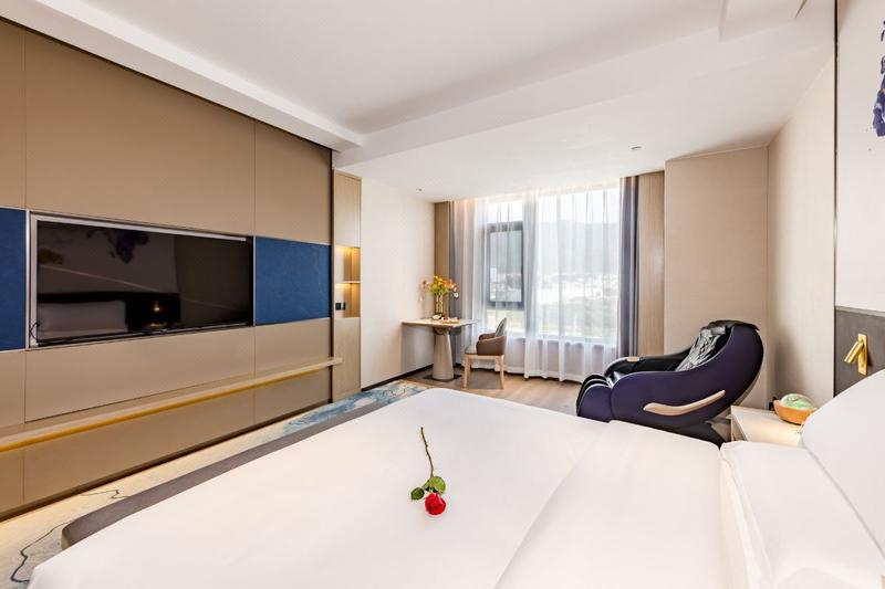 酒店的创始理念是:回归客人安全舒适入住、注重沉浸式体验的本质。 【酒店特色】每一处装修细节体现出以人为本和高科技结合的服务理念,高挑大堂、机器人无接触配送、室内外园林景观布置、多款精致下午茶,完善的服务配套设施打造出风格独特的客房,值得您腾出百分之一的时间去体验百分之百的生活本质和高科技的融合场景。 【交通便利】酒店距离高铁站,车程仅约8分钟。距离高速出口。距离机场约车程20分钟左右,可接送。 【酒店配套】酒店配备品牌电梯,一楼场景式大厅、休闲区、商务区,二楼早餐厅可同时容纳50人就餐,提供特色餐饮、水果、新鲜果汁饮料以及各种自助轻奢健康美食;二楼健身房、洗衣房方便您的出行和锻炼所需;二楼会议室可容纳100人需求。 【光纤网络】整幢WiFi覆盖、千兆光纤网络独享,下载上传速度11.4m/秒,播放速度11.5M/秒,缓冲速度11.4m/秒。智慧云服务。 【酒店硬件】客房均配备品牌电视,独立中央空调,品牌卫浴,精选量身定制高品质舒适床垫,同进口沐浴液、洗发液,高品质软毛牙刷,棉麻材质舒适拖鞋,3秒出热水恒定热水系统。 【增值服务】酒店提供免费私人订制旅游方案、接机服务。 【周边景点】酒店比邻玉龙湖公园、茶文化风情园、秘境谷森林小镇、立景阁、旗山。 【娱乐购物】酒店三楼足浴、隔壁KTV,附近临沧市体育馆、恒春星光夜市、佤山凤城、新亚太时代广场。距临沧沃尔玛超市、KFC、电影院等商业区车程约10分钟。酒店周边涵盖吃、喝、玩、游、购的全方位便利设施。 【免费停车】酒店有专用停车场可提供50个免费停车位。 【服务承诺】客房布草正规布草洗涤厂洗涤,布草一客一换,客用口杯、茶杯、毛巾、浴巾、拖鞋均高温消毒。家具、洁具、空气定时消毒。 【商务出差】酒店距工商银行步行1分钟,距各大国家行政机关以及便民服务中心车程约5分钟,有配套会议相关设施服务。 【亲子度假】酒店精选1.8米大床、1.35米双床,设置亲子童趣房型,客房面积35平方,便于您舒适休息。 【情侣约会】酒店配备零压按摩椅,在您舟车劳顿以及浪漫夜晚给与您独特的休息空间。 此外,酒店还可以根据您的需求,提供更多专业及个性化的服务,让您的商务、度假、休闲之旅更加省心舒适。