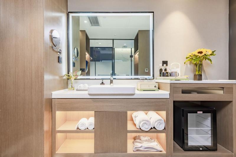 酒店的创始理念是:回归客人安全舒适入住、注重沉浸式体验的本质。 【酒店特色】每一处装修细节体现出以人为本和高科技结合的服务理念,高挑大堂、机器人无接触配送、室内外园林景观布置、多款精致下午茶,完善的服务配套设施打造出风格独特的客房,值得您腾出百分之一的时间去体验百分之百的生活本质和高科技的融合场景。 【交通便利】酒店距离高铁站,车程仅约8分钟。距离高速出口。距离机场约车程20分钟左右,可接送。 【酒店配套】酒店配备品牌电梯,一楼场景式大厅、休闲区、商务区,二楼早餐厅可同时容纳50人就餐,提供特色餐饮、水果、新鲜果汁饮料以及各种自助轻奢健康美食;二楼健身房、洗衣房方便您的出行和锻炼所需;二楼会议室可容纳100人需求。 【光纤网络】整幢WiFi覆盖、千兆光纤网络独享,下载上传速度11.4m/秒,播放速度11.5M/秒,缓冲速度11.4m/秒。智慧云服务。 【酒店硬件】客房均配备品牌电视,独立中央空调,品牌卫浴,精选量身定制高品质舒适床垫,同进口沐浴液、洗发液,高品质软毛牙刷,棉麻材质舒适拖鞋,3秒出热水恒定热水系统。 【增值服务】酒店提供免费私人订制旅游方案、接机服务。 【周边景点】酒店比邻玉龙湖公园、茶文化风情园、秘境谷森林小镇、立景阁、旗山。 【娱乐购物】酒店三楼足浴、隔壁KTV,附近临沧市体育馆、恒春星光夜市、佤山凤城、新亚太时代广场。距临沧沃尔玛超市、KFC、电影院等商业区车程约10分钟。酒店周边涵盖吃、喝、玩、游、购的全方位便利设施。 【免费停车】酒店有专用停车场可提供50个免费停车位。 【服务承诺】客房布草正规布草洗涤厂洗涤,布草一客一换,客用口杯、茶杯、毛巾、浴巾、拖鞋均高温消毒。家具、洁具、空气定时消毒。 【商务出差】酒店距工商银行步行1分钟,距各大国家行政机关以及便民服务中心车程约5分钟,有配套会议相关设施服务。 【亲子度假】酒店精选1.8米大床、1.35米双床,设置亲子童趣房型,客房面积35平方,便于您舒适休息。 【情侣约会】酒店配备零压按摩椅,在您舟车劳顿以及浪漫夜晚给与您独特的休息空间。 此外,酒店还可以根据您的需求,提供更多专业及个性化的服务,让您的商务、度假、休闲之旅更加省心舒适。