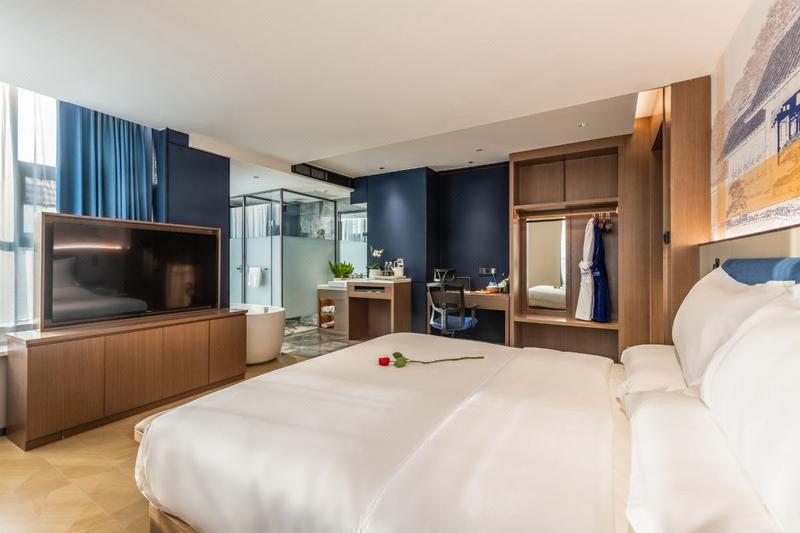 酒店的创始理念是:回归客人安全舒适入住、注重沉浸式体验的本质。 【酒店特色】每一处装修细节体现出以人为本和高科技结合的服务理念,高挑大堂、机器人无接触配送、室内外园林景观布置、多款精致下午茶,完善的服务配套设施打造出风格独特的客房,值得您腾出百分之一的时间去体验百分之百的生活本质和高科技的融合场景。 【交通便利】酒店距离高铁站,车程仅约8分钟。距离高速出口。距离机场约车程20分钟左右,可接送。 【酒店配套】酒店配备品牌电梯,一楼场景式大厅、休闲区、商务区,二楼早餐厅可同时容纳50人就餐,提供特色餐饮、水果、新鲜果汁饮料以及各种自助轻奢健康美食;二楼健身房、洗衣房方便您的出行和锻炼所需;二楼会议室可容纳100人需求。 【光纤网络】整幢WiFi覆盖、千兆光纤网络独享,下载上传速度11.4m/秒,播放速度11.5M/秒,缓冲速度11.4m/秒。智慧云服务。 【酒店硬件】客房均配备品牌电视,独立中央空调,品牌卫浴,精选量身定制高品质舒适床垫,同进口沐浴液、洗发液,高品质软毛牙刷,棉麻材质舒适拖鞋,3秒出热水恒定热水系统。 【增值服务】酒店提供免费私人订制旅游方案、接机服务。 【周边景点】酒店比邻玉龙湖公园、茶文化风情园、秘境谷森林小镇、立景阁、旗山。 【娱乐购物】酒店三楼足浴、隔壁KTV,附近临沧市体育馆、恒春星光夜市、佤山凤城、新亚太时代广场。距临沧沃尔玛超市、KFC、电影院等商业区车程约10分钟。酒店周边涵盖吃、喝、玩、游、购的全方位便利设施。 【免费停车】酒店有专用停车场可提供50个免费停车位。 【服务承诺】客房布草正规布草洗涤厂洗涤,布草一客一换,客用口杯、茶杯、毛巾、浴巾、拖鞋均高温消毒。家具、洁具、空气定时消毒。 【商务出差】酒店距工商银行步行1分钟,距各大国家行政机关以及便民服务中心车程约5分钟,有配套会议相关设施服务。 【亲子度假】酒店精选1.8米大床、1.35米双床,设置亲子童趣房型,客房面积35平方,便于您舒适休息。 【情侣约会】酒店配备零压按摩椅,在您舟车劳顿以及浪漫夜晚给与您独特的休息空间。 此外,酒店还可以根据您的需求,提供更多专业及个性化的服务,让您的商务、度假、休闲之旅更加省心舒适。