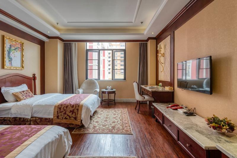 沧源金佤大酒店位于沧源县商业中心地段,毗邻县城中心和摸你黑广场,交通十分便利。 沧源金佤大酒店由昆明泰丽国际酒店输出管理,拥有专业的酒店管理团队。酒店主楼和裙楼形成一体的欧式优美建筑群。楼高7层,占地面积为9885.94平方米,风格独特。 酒店客房温馨舒适,房内均配有中央空调、国际卫星频道、国际国内直拨电话、迷你吧、浴洗设施、中央音响系统等。 同时,店内配设KTV、影城、茶吧、游泳乐园及停车场等休闲娱乐设施完善。更有设施完备的商务中心,为商务人士提供优质的办公环境。