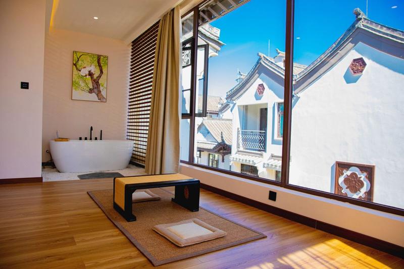 大江映雪酒店坐落于彝风湿地小镇西畔(距楚雄站约5分钟车程,距高速口约5分钟车程,距彝人古镇约5分钟车程)。是一家宠物友好型的精品设计师酒店。是一家宠物友好型的精品设计师庭院酒店。 酒店拥有几十间轻奢智能客房,配备了智能音响、智能窗帘、高清投影、轻奢床垫,面积35-120平米不等为顾客打造舒适、宽敞、智能的休闲旅途。酒店为客人配备了minibar、免费的茶室、棋牌室。 临江而落、一砖一瓦,一座一榻、 无不透露着宁静祥和,在古朴、现代交织的环境中,透露着淡淡的禅意 可以冥想、抄经、静修,亦或坐于江畔与好友对弈,感受周遭的一草一木、品味入口的一粥一饭,对于身心皆是一次不同以往的祥和体验。 庭院中,一古树、一古琴、一团蒲,一方桌,席地而坐,四周皆被流水环绕,置身其中,仿佛时间都降低了流速。 房间内,讲求“空”与“无”。墙面纯白,看似毫无修饰,却给人沉静质感。家居摆放极近简洁,让人心境明澈。无尘的房间,素雅禅境,美得很纯粹。没有浓墨重彩的勾勒,纯色墙面浅白暖光,亚麻灰色混着淡淡原木香气。功能上,在古典的环境中融入了现代科技给与人的便捷,让现代与传统交织在一起,在这样一个简居里,望着窗外的那一抹秋冬,心便自然安静了。 桥影流虹,大江映雪,故人不卷春秋。