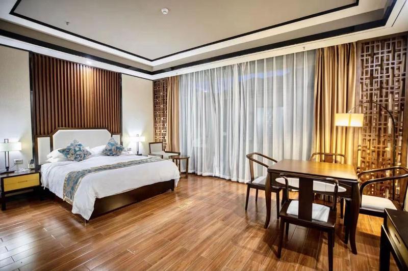 信阳桃花源酒店地处信阳市南端,位于桃花寨景区内。酒店至信阳市火车站、长途汽车站仅40分钟车程,至信阳市高铁东站为50分钟车程。酒店主体总建筑面积为3千平方米,楼层总高3层,配套建筑有独栋别墅,林间木屋所组成。 信阳桃花源酒店精心打造安逸舒适的客房,每间客房的面积均在20平方米以上,均为优质景观房与湖景房。宾客可享受到一系列尊贵服务,如品牌舒压床、网络电视、使用无线和宽带上网等设施,景点房型满足客户的需求。酒店配套有高级中餐厅及精致早餐厅,可同时容纳400人同时用餐,亦可提供会议餐、活动自助餐及宴会餐等。