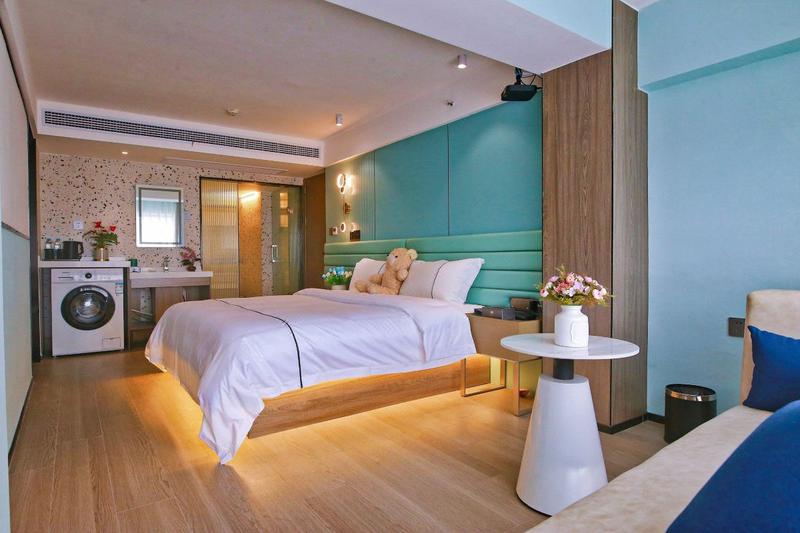 【房间位置】本店位于金河湾1881-1栋,靠近中心汽车站、南华大学、金钟大雁城、红星美凯龙、平湖公园、华耀城。楼下有24小时便利店,夜宵摊、水果店等各种店铺。(南华大学有美食一条街,人流量每天络绎不绝,能从街头吃到街尾;金钟大雁城有刘一手火锅、雨花西餐厅。) 【交通出行】出行方便,酒店附近有公交车站。本店距南华大学、金钟大雁城路程车程10分钟;距万达广场路程车程15分钟;距南华大学附属第一医院车程10分钟、距离旅游景区南岳衡山仅驾车40分钟,也是离景区最近的酒店。 【特色服务】我们将为您提供行李寄存服务,免费停车服务,从入住到退房一条龙的管家式服务。 【户型功能】本店设有轻奢篮球主题房,尊享影院大床房,优享大床房等不同风格、档次的房间。客房内设施高档,装修时尚、新潮,格调温馨怡人。房间配备智能化家居,能够通过智能家居专属APP“小度”开启窗帘、灯光、音乐、电视、投影等设备,还可享受百兆WLAN网络专线和卫浴设备。人性化的空间规划与设计,温馨舒适,不仅能给您带来入住体验的提升,还能带您体验新型的生活方式。 【入住安心】房源配置智能密码锁,出入无需钥匙门卡,全程自助,给您安静的享受。 【干净卫生】我们每一客一换,每天消毒,有专业的保洁清扫,让您住得安心。