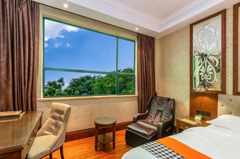 酒店座落于国家优秀旅游城市郴州市,北湖区骆仙东路16号(北湖实验中学对面),郴阳古八景“龙泉烟雾”所在地。 酒店位于五岭广场、南塔公园与北湖公园的中心地段,商圈成熟、交通便利。距京珠高速公路约10~12分钟车程。往东江湖、莽山、飞天山及“半条被子”故事发生地沙洲村等风景名胜或红色景区方便快捷,具有优良的交通地理位置。 酒店总建筑面积近6000平方米,内有庭院式园林和充足的停车场;欧陆风情与现代商旅相结合的独特风格,中西合璧、温馨高雅;酒店服务设施设备齐全。配有60~80人会议室,每天有丰富多样的自助早餐;一楼有本土盛名的渔鲜码头餐厅,周边餐饮娱乐场所较多。是您旅游休闲的优选之地,我们将以阳光热情的服务、期待着您的光临。