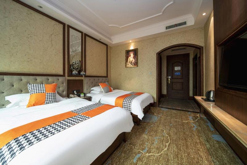 酒店座落于国家优秀旅游城市郴州市,北湖区骆仙东路16号(北湖实验中学对面),郴阳古八景“龙泉烟雾”所在地。 酒店位于五岭广场、南塔公园与北湖公园的中心地段,商圈成熟、交通便利。距京珠高速公路约10~12分钟车程。往东江湖、莽山、飞天山及“半条被子”故事发生地沙洲村等风景名胜或红色景区方便快捷,具有优良的交通地理位置。 酒店总建筑面积近6000平方米,内有庭院式园林和充足的停车场;欧陆风情与现代商旅相结合的独特风格,中西合璧、温馨高雅;酒店服务设施设备齐全。配有60~80人会议室,每天有丰富多样的自助早餐;一楼有本土盛名的渔鲜码头餐厅,周边餐饮娱乐场所较多。是您旅游休闲的优选之地,我们将以阳光热情的服务、期待着您的光临。