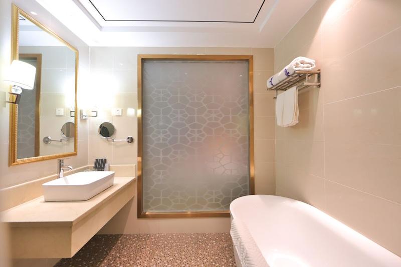 珲春希尔顿大酒店大堂气魄宏伟、全体员工服务热情礼貌,并使用至少3国语种的文字指示及对客服务,酒店秉承以”宾客”为中心,以“自我”超越为服务宗旨的经营理念欢迎您的下榻。