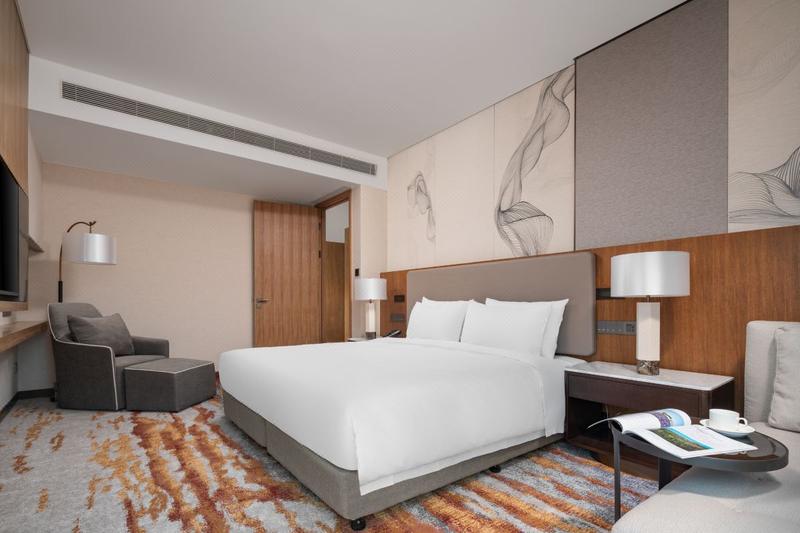 酒店位于保定市核心位置,地处保定高新产业技术开发区,酒店周边聚集有保百购物广场商圈、北国先天下购物广场商圈和万博购物广场商圈,购物美食一应俱全,酒店丰富的周边配套可满足每一位宾客的出行需求。 酒店拥有舒适、典雅、高端的客房,房内设施配备齐全,我们会以典雅的环境和个性化的方式关注每一位宾客的入住体验。酒店是集松鹤延年淮扬府中餐厅、和之道日料餐厅、蕉椰泰餐厅以及星悦扒房为一体的高端餐饮综合体,给宾客带来一流的餐饮享受。7个大、中、小会议室及婚宴大厅可接待20—500人不同规模、不同规格的会议,能够为客人定制商业会议、婚宴庆典、私人派对等各种活动。四季恒温的畅游馆具备国际先进水循环和过滤处理系统,为广大宾客提供舒适放心的畅游体验。同时,酒店还有麦禾星语烘焙坊、商品部等以满足不同客人的需求。