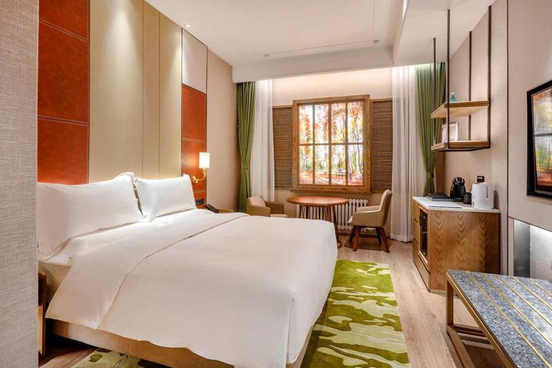 望江轻奢酒店(黑河黑龙江江畔店)位于双拥大街,毗邻黑龙江畔,目视俄罗斯,距离中央步行街约10分钟。 6000m²奢华酒店临江而建,800m²酒店大堂吧古朴而雅致,酒店全程提供奢华品质、一对一超贴心的管家式服务、免费下午茶、半自助特色中西式早餐、红酒吧、雪茄吧、茶室、庭院、健身房等功能设计的初衷就是使酒店成为时尚生活方式的提供者。 酒店拥有多种房型客房,奢华床品高品质睡眠,汉斯格雅卫浴尊贵品质,全智能马桶智享洁净,咖啡机、空气净化器奢享精致生活,客房每日提供两瓶矿泉水。