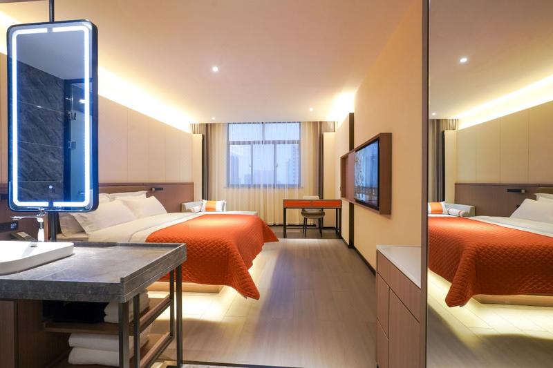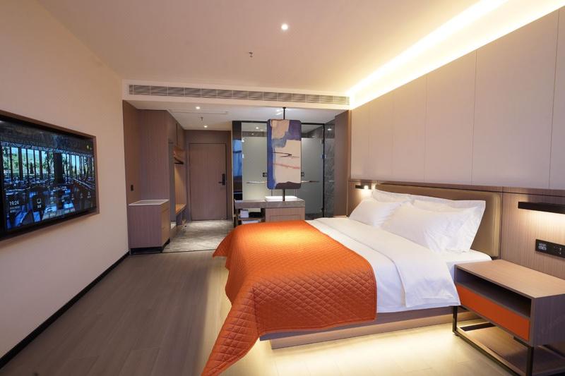 酒店位于铜川市市政府向北,酒店装修风格简约轻奢,环境优美设施齐全,店内设有致美景观套房、致美浴缸大床、致美影音榻榻米、致美舒适双床、致美舒适大床等多种房型供您选择。 店内有停车、早餐、洗衣、健身房、会议室等多种配套设施服务,房间内设有独立空调、液晶电视、投影仪、干湿分离卫浴、24H热水,为您营造舒适、轻奢、静谧、时尚的住宿体验。