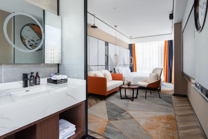 武威栖悦里精品酒店位于武威市凉州区中心中天健广场,紧靠步行街商业区。 这是一家及现代、商务为一体的时尚精品酒店,打破传统酒店观念,在这里每个人都追寻真正的自由,舒适独特的体验,新颖的视觉盛宴,让您邂逅灵魂深处的自我。酒店设有七种不同风格房型,给客人不同的体验,房间配备全自动窗帘、智能马桶、进口零食、各种高档饮品等,让您在这个城市邂逅自由的自己。栖:良禽择木而栖、自由选择栖息之地、寄托。悦:找寻真我的愉悦、心有所属、自由的向往。里:小而精致的场所