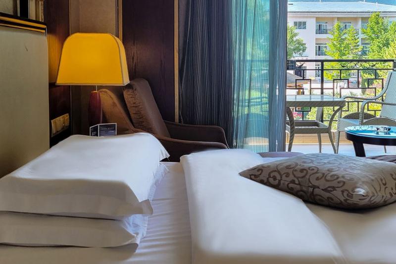 酒店地处古丝绸之路重镇,位于国家首批5A级旅游景区、国家地质公园,景色秀丽、交通便利。 酒店集温泉水疗、旅游休闲、度假娱乐、文化研讨、商务会议、住宿餐饮于一体,总占地438亩,总建筑面积5.8万平方米。总体规划映照道教文化中“八卦”脉络,自南侧引入崆峒山之水,在山庄中央掘地为湖,蜿蜒迂回,以湖为中心,自然地营造出一片花园区清爽幽雅的意境。 酒店公共区集餐饮、会议、高档住宿为一体,其中零点餐厅、(民族风味餐厅)、中餐宴会厅,大小包间共29个,宴会厅共5个,多功能厅1个,可同时容纳2500人就餐。1800平米的多功能厅及各类大小会议厅12处可同时提供2000多人的会议服务。 酒店客房住宿区设有客房楼5栋,拥有各类客房395套,总接待床位700多张;客房设有露天阳台,花园式酒店美景一览无遗。康乐洗浴区内设VIP会所、温泉水疗、演艺大厅、棋牌茶社等娱乐设施;健身运动区内网球场、篮球场、羽毛球场、游泳馆等设施一应俱全。 酒店同时配备大型停车场、高速宽带、中央空调等公用设施为您提供更为方便快捷的服务。 酒店绿化率达到了73.8%以上,湖波荡漾,丰富的自然景观和人文景观,相映成趣,令人心旷神怡。