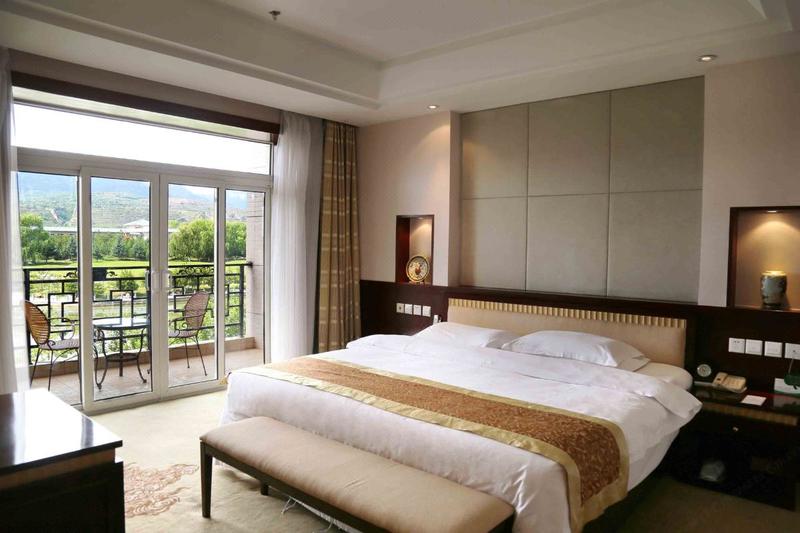 酒店地处古丝绸之路重镇,位于国家首批5A级旅游景区、国家地质公园,景色秀丽、交通便利。 酒店集温泉水疗、旅游休闲、度假娱乐、文化研讨、商务会议、住宿餐饮于一体,总占地438亩,总建筑面积5.8万平方米。总体规划映照道教文化中“八卦”脉络,自南侧引入崆峒山之水,在山庄中央掘地为湖,蜿蜒迂回,以湖为中心,自然地营造出一片花园区清爽幽雅的意境。 酒店公共区集餐饮、会议、高档住宿为一体,其中零点餐厅、(民族风味餐厅)、中餐宴会厅,大小包间共29个,宴会厅共5个,多功能厅1个,可同时容纳2500人就餐。1800平米的多功能厅及各类大小会议厅12处可同时提供2000多人的会议服务。 酒店客房住宿区设有客房楼5栋,拥有各类客房395套,总接待床位700多张;客房设有露天阳台,花园式酒店美景一览无遗。康乐洗浴区内设VIP会所、温泉水疗、演艺大厅、棋牌茶社等娱乐设施;健身运动区内网球场、篮球场、羽毛球场、游泳馆等设施一应俱全。 酒店同时配备大型停车场、高速宽带、中央空调等公用设施为您提供更为方便快捷的服务。 酒店绿化率达到了73.8%以上,湖波荡漾,丰富的自然景观和人文景观,相映成趣,令人心旷神怡。