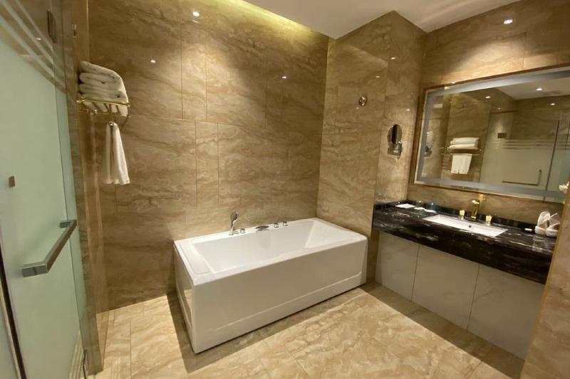 绥化金鼎海天国际酒店地理位置于康庄路与北辰路交叉口,临近科技馆,市政府广场,万达商圈,距市中心繁华地带步行约15分钟。 远离城市宣泄,享受至尊生活,是一种态度,一种沉醉,一种性情,一种过瘾,一种生命里活出两重彩的可能——金鼎海天国际酒店;金鼎海天国际酒店是一家集客房、美食、宴会、会议、水汇、休闲娱乐于一体的星级酒店。水汇有洗浴、汗蒸、养生温泉、儿童戏水滑梯、游泳、冲浪、观影厅、按摩、棋牌室、自助餐。用百分百的努力换取您十分的满意,高品质的服务创造高品质的生活,要尊贵,抬头就是!要幸福,身边就是!要绿色,眼前都是!要安静,四周都是!要健康,本身就是! 酒店由一线设计师团队精心打造,无论是商务接待还是养生休闲都能让您乐在其中。酒店共设有17层,总面积达到80000平米左右,拥有高档客房,酒店融合东南亚风格、北欧时尚元素与现代精致的组合,让您处处是惊喜。 如果现代化的都市换来淡漠和冰冷那么一切将一钱不值,真诚的关怀和亲近则是心的抚慰金鼎海天国际酒店,抹去心的倦容,酒店配置高端环保家具,品牌床品布草,高清数字电视、24小时热水、WiFi等设施,客房卫浴采用精品设施干湿分离,绥化金鼎海天国际酒店欢迎您的光临。