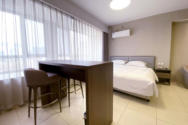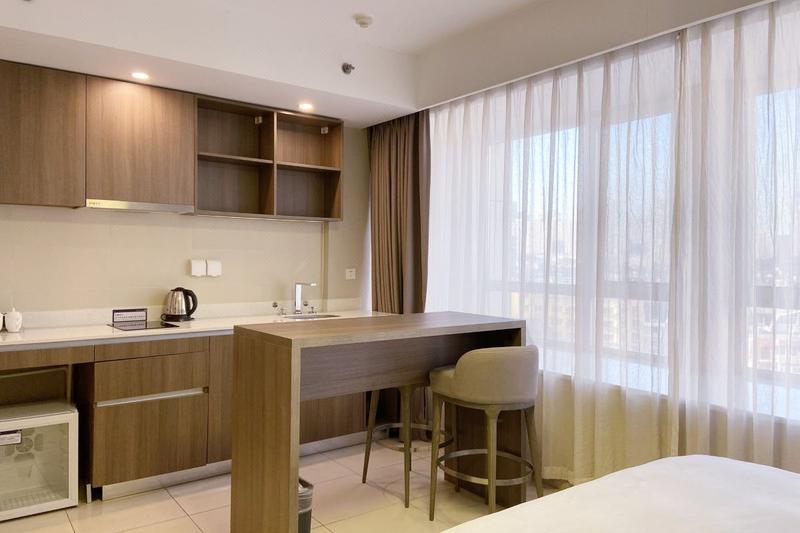 是按照高星级酒店标准建造的豪华商务公寓式酒店,占据大连中西部商业中心,多条线路可迅速抵达机场、高铁站、码头等交通枢纽,处于地铁换乘的中心站点旁。麦凯乐,中央大道,罗斯福,家乐福等购物中心近在咫尺。毗邻星海广场,圣亚海洋世界。酒店装修注重自由风格,其设计时尚,突出品味与质感,注重现代文化与商务气息。星级标准的床品,无线网络的全面覆盖,室内的全功能厨房、独立的用餐区、干湿分离的卫生间设计,为您提供了温馨,舒适,静谧的私人空间,愿为您卸下心灵的疲惫,成为您出行下榻的选择。