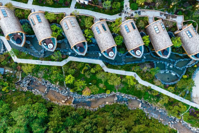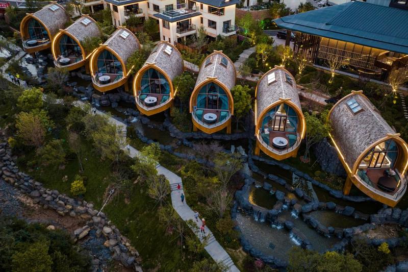 3000平高奢酒店拥有各类客房,以超服务标准为客户提供尊享服务。酒店内设有无边泳池,打造“白咖夜酒”主题区域,更有特色餐饮服务,满足客户生活需求。 酒店建有东北首座船屋集群,特色loft船屋,奢阔观景平台,更提供独立温泉泡池。在这里,听海浪奔涌,享惬意时光。 酒店位于盛唐·岚山度假综合体项目,总占地面积13万平方米,是集“旅游+生态+休闲+度假+文化+运动+康养+研学+会议+餐饮+婚庆”等多功能于一体的全龄化特色文旅项目,包括生活度假、山水田园、休闲娱乐、文化打卡、特色观景等五个维度十七大场景。