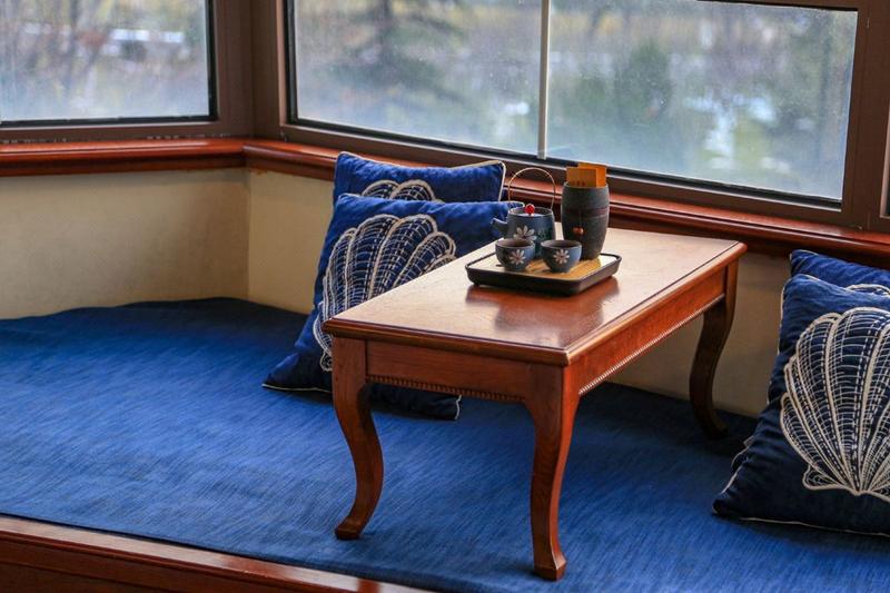 日月之行,若出其中;星汉灿烂,若出其里。烟波浩渺,沙鸥翔集。澎湃静谧,神秘浪漫。这是大海的独特魅力。树木丛生,百草丰茂,四季有绿,三季有花,小鸟叽喳,松鼠蹦跳,这是星海公园的美丽景色。 酒店是一幢蓝色红顶的独栋别墅,就建在花草繁茂的星海公园里,建在海天一色的大海边。住这里仿佛置身天然氧吧中,风中有着清新的青草气息和淡淡海的味道。住这里,您的心情一定是舒畅的,身体一定是健康的。 进入酒店,厅廊内一幅幅手绘油画,笔触细腻,极富质感。蓝白为主色调的房间,华美的幔帘,精巧的壁炉和吊灯,躺在舒软的大床上您一定会做一个关于远方的、甜甜的梦。 酒店配有阅界书吧、香遇餐厅,不但可以看书办公,用餐品茗,更是小型商务会议、文化沙龙、朋友聚会、庆典Party的宜佳场所。这里还自带小院,茂花修竹,秋千摇曳。和风天暖时,还可以围炉煮茶,烧烤小酌。 酒店坐落于大连城市主干道旁,商场、游乐园、医院、学校近在咫尺,交通、生活便捷。虽在繁华中,却可带你远离尘世喧嚣。出“樊笼”入“桃源”,竟然可以如此容易。来这里,闲看花开花谢、潮起潮落,体味纯真、恬淡的幸福吧!