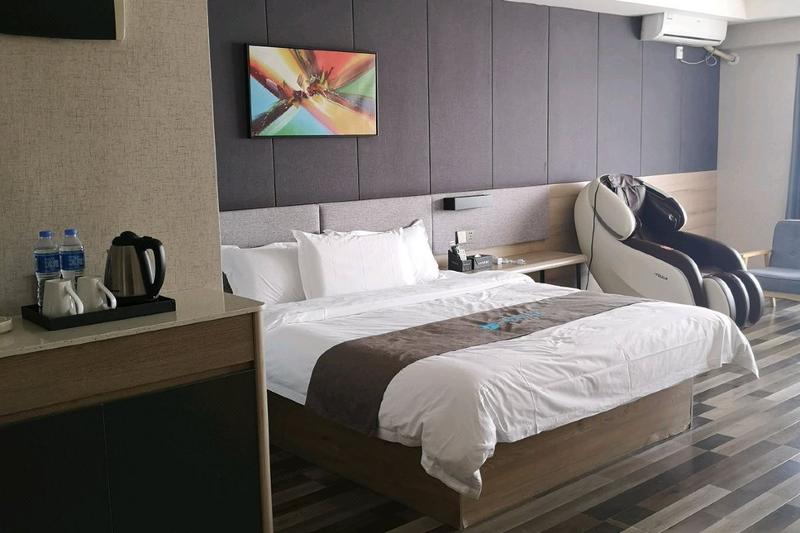 大连城驿联号酒店地理位置优越,处于金普新区中心地带,逛街购物,商务出行都很方便。大堂在大楼的1层,客房位于22-25层,东向客观山,西向可看海,是您来大连的可选之酒店,来金普新区优选之酒店。 酒店致力于为您提供无与伦比的高端服务与住房体验。每间房百兆光纤入户,然您尽情享受网络快乐。特色光波温泉床垫,让您在繁忙之余拥有全新零负担睡眠。 一天的奔波常常让您身心疲惫,那么来我们城译联号休息吧,房间给您准备了舒适的按摩椅让您听听音乐、看看手机瞬间让您回复活力。