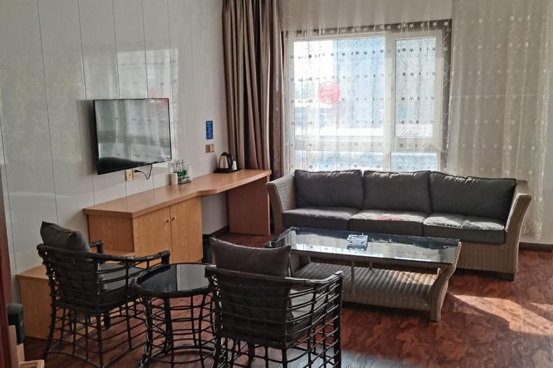 大连大合商务酒店位于三十里堡街道东山后村国泰路,近商场超市,配备免费停车场。 酒店营业面积2000平方米,住宿环境优雅、安静,酒店对客房的装饰十分考究,每间设施齐全的客房都配备有空调。有饮水需求的旅客,酒店还为您提供了瓶装水。除此之外,配备有拖鞋、24小时热水和吹风机的浴室是您消除一天疲劳的好地方。 旅客可以在闲暇时间去酒店的休闲区,提升健康幸福感。24小时开放的前台服务可为您随时提供信息,以帮助您探索这个魅力之都。