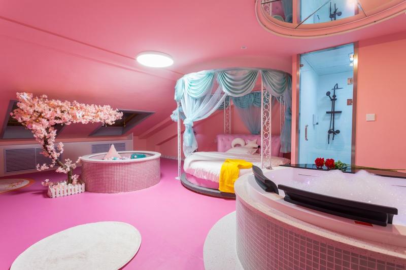 - 房间(开放): 楼 十里桃花主题房(按摩浴缸)