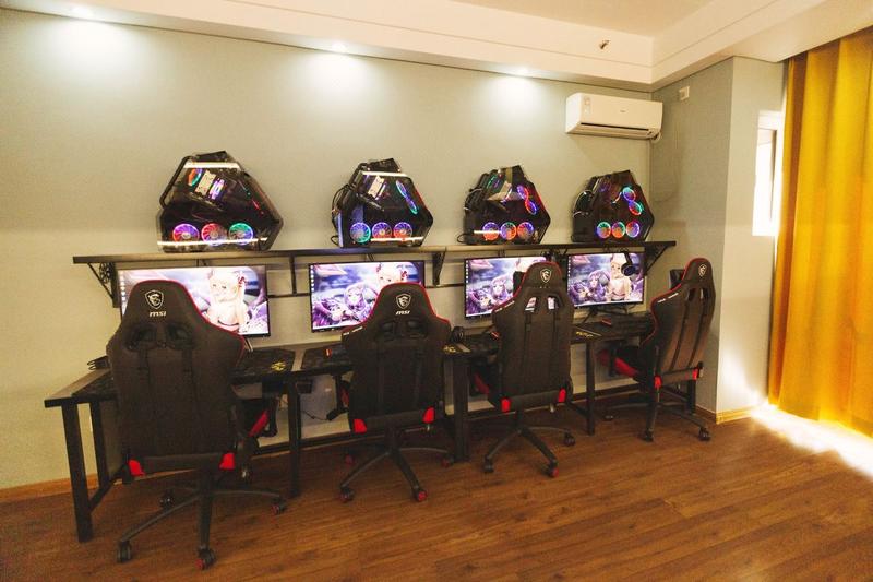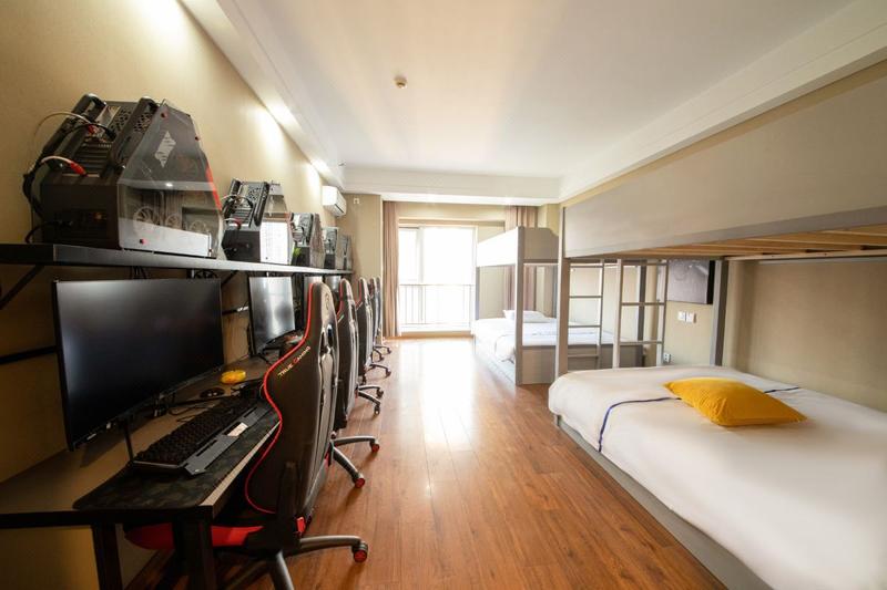 大连提伯斯电竞酒店位于万达广场南侧,交通方便。 酒店电脑设备专业,基础配置i7,2060,32寸曲面144hz专业电竞显示器,双飞燕键盘,罗技鼠标,达尔优7.1声道钻石耳机;更有发烧友配置i9,2070s,2080s,明基职业电竞显示器,带鱼屏显示器,海盗船鼠标键盘。 所有房间均配备阿卡丁电竞椅以及msi电竞椅,拥有多种客房,满足情侣,朋友,各类人群开黑的需求。酒店因为热爱,所以更懂你们的需求,为了热爱电竞的你们,会努力做到更好。期待小可爱们的光临。