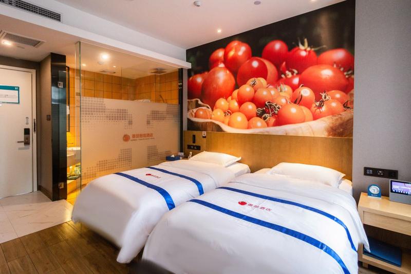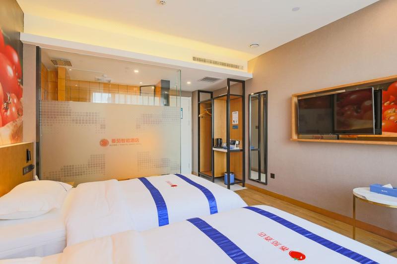 鞍山番茄酒店位于鞍山市中心繁华的站前商业区内,(百盛西北约200米,原:地质酒店)位置:“闹中取静”,交通便利,为住店客人免费提供停车场。酒店附近有各大商场、步行街、餐饮、娱乐设施,可以满足您的所有用餐、购物、度假、娱乐的需求。 智能•唯美•时尚…实现了全智能客控硬件、AI识别全智能化系统,可实现无房卡入住,开门所有灯光自动亮起,窗帘自动打开,电视自动开启。在房间用手机和小度智能机器人实现室内:空调,灯光,音乐,电视和窗帘的语音操控功能,高智能化可控客房内配备的三巾布草、床上用品和卫浴都是品牌商品,参照高端酒店标准;另外还有:VR体验私人影咖、院线影院、网红咖啡吧、高端定制餐饮会所集于一体!