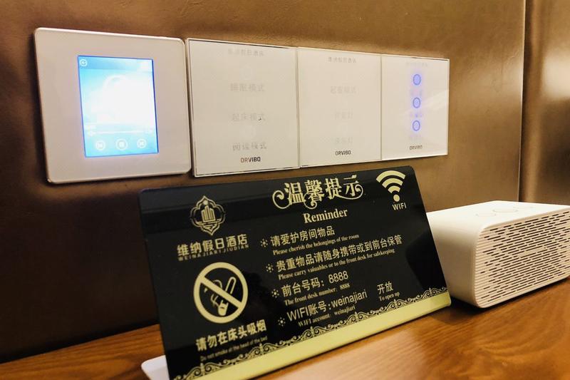 桓仁维纳假日酒店,位于桓仁县城中心,章樾公园南侧,交通便利,紧邻大型商业圈。 这是桓仁县一家智能酒店,房间内采用全智能系统,控制门锁 窗帘 音乐 灯光,空调等。当您刚一插上房卡,客房内的灯光柔和点亮,窗帘缓缓关上,音乐主机播放出舒适曼妙的音乐,客房外的门牌也随即点亮,提示我入住模式已触发开启。通过手机关注维纳假日微信号公众号,点击智慧酒店按钮进入酒店智能控制的窗口,输入前台给的验证码,即可对客房的设备进行控制。给您带来更舒适、时尚,便捷和科技感的入住体验。室内家具全部采用禾香木材质及环保漆,入住酒店,如同在森林里呼吸,空气洁净,清新! 酒店内设山景房,浪漫婚房 豪华标间 豪华大床房。 山景房,可欣赏世界文化遗产五女山山城(高句丽开国都城)的全貌及章樾公园(纪念桓仁县首任知县-章樾而建)-桓仁县较大的公园的全景。 浪漫婚房,真正的新房,让新人一切从新开始,从这里起航迎接幸福美满的生活! 入住即可享用营养美味的早餐,食材全部采用桓仁县当地的特产烹饪而成。纯绿色,无污染,地地道道的无公害食物!大众的消费,高档的享受,酒店各岗位服务人员给您营造家的气氛,让你真正体会家的温馨。在这里您可以真正感受休闲度假的惬意!