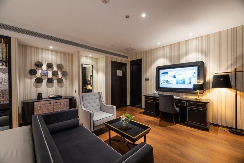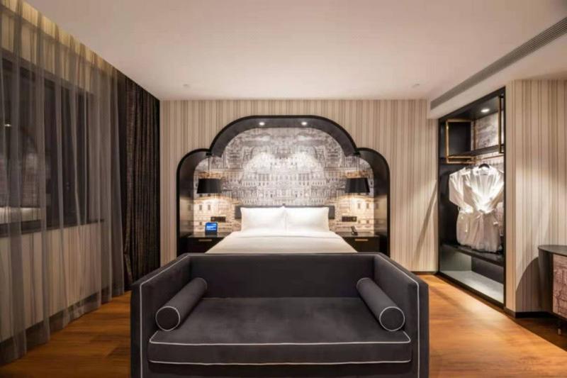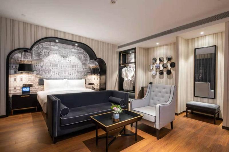 酒店位于丹东新区新中朝鸭绿江大桥旁,地处丹东新区鸭绿江大街,面临波澜壮阔的鸭绿江,毗邻风景旖旎的国门湾公园,新鸭绿江大桥、公园、被誉为“一线江景”的新加坡城园区构成得天独厚的三景酒店;周边商超、学校、医院、交通、景区等配套醇熟。 旗下拥有多名国内外设计师团队,因而充分考虑了酒店所处建筑本身特点与周边环境的融合,在丹东新区,打造具有江景特色的酒店,拥有8大特色主题房型,设有秋韵、远山含黛、航海之旅、欧洲小调、禅音、荷塘月色、江南、星际迷航等主题套房,为丹东带来前所未有的酒店居住体验。临水而居,观景修心,是我们向往的旅居时光。与光交融,与影共鸣,它丈量空间无限的潜能,追求无拘无束的体验,使品质在每个细节中发酵,让精致的生活从此刻开启。