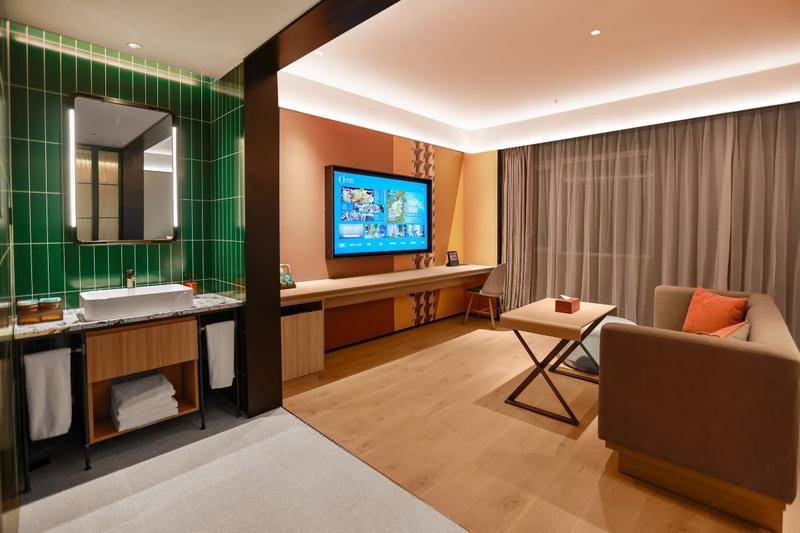桔子酒店(绥中体育场店)位于葫芦岛市绥中县新兴街一段95号,绥中体育场正对面,是华住旗下中档品牌酒店,酒店周边配套设施齐全,交通便利,距离绥中高铁站驾车仅10分钟,酒店内设有私密性较高的免费地下停车场,酒店大堂配有送物机器人“小桔”,随时为您提供送物,引领等服务,全程无接触,让您入住更安心;客房配备65寸液晶电视,小冰箱,AI智能小度音响,通过与小度对话解放您的双手,实现自动化开关窗帘、电视、空调、灯光、24小时的贴心管家服务。酒店无线网络全覆盖,配有早餐厅、洗衣房、健身房、会议室等配套设施,竭力为您提供高品质、高效率、高质量的服务,一切只为您安心舒适的入住之旅。