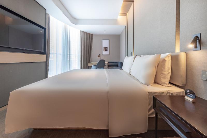 郑州高铁东站亚朵酒店位于郑东新区东风南路与创业路绿地双子塔内,地处郑东自由贸易试验区和高铁东站双核心片区,核心路段,坐拥郑东新区市民体育公园绿意盎然,毗邻郑东新区绿地双子塔商业综合体,绿地360、海汇中心、天空之城近在咫尺,高铁、公交、地铁设施完善交通便捷。 酒店所有客房均采用普兰特系列优质床品,全套高端“萨合”系列洗浴用品,高速光纤全WIFI覆盖,数百幅优美人文摄影装点的客房及公共区域,向住店客人开放借阅的图书馆,都为酒店增添浓厚的艺术氛围。 酒店设有餐厅(相招)、会议室(共语)、洗熨烘干自助洗衣房(出尘)、健身房(汗出)及阅读会友空间(竹居),为您提供一个自在、放松的居停空间。 酒店延续亚朵的人文精神及品质初心,集合美好的城市空间与生活方式,提供给每位宾客一个全新的社交旅居空间。在这里,能够休憩、充电、放松、是您商务会议及旅游的理想选择