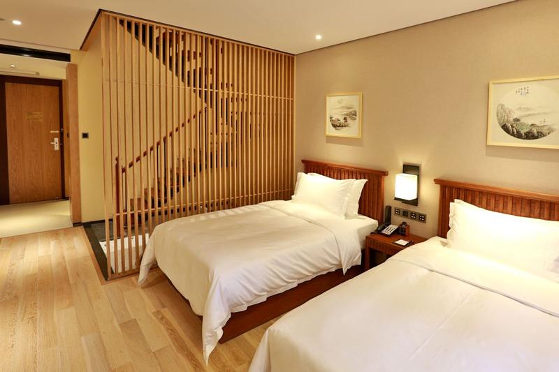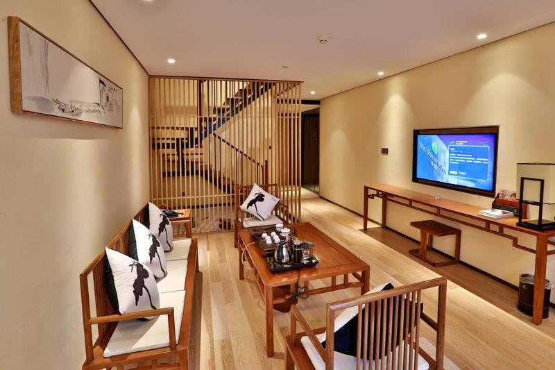酒店位于金成时代广场,距郑州CBD会展中心、郑州市艺术中心、丹尼斯七天地、熙地港仅隔一条中州大道,距离地铁5号线姚砦站C口约步行2分钟,周边毗邻河南省人民医院,河南省肿瘤医院。 这是以禅茶文化与中式装修完美结合的新中式禅意酒店,古朴典雅、独具匠心。将茶文化、书文化、香文化、禅乐心经、素语餐厅等创造成一个人文、社交、格调相融的静心氛围,为顾客营造缓解压力、静心达意的精神体验。 酒店设有书画室、茶室、健身房、素语餐厅、宴会包房、自助洗衣等设施,客房提供全天候的热水供应、中央空调、WIFI覆盖、百兆光纤、分离卫浴、直饮水吧、房间小书吧,也打造了河南酒店行业目前完备、先进的智能化控制系统,从灯光、电器、窗帘乃至开门都可以实现微信控制,同时提供营养早餐、旅游、商务、洗衣等便捷服务。独立停车场,每一个细节均彰显人文关怀。温馨静雅的客房,只为你体验“祥净·无隅·品质生活”。