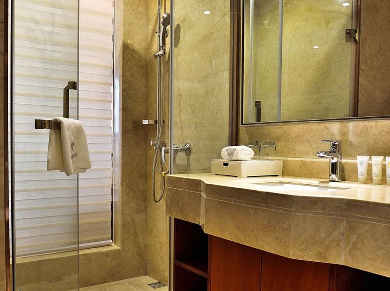 酒店距离华润万象城、丹尼斯大卫城、新田360购物中心、大上海城、德化步行街、世贸大户批发城、地标建筑(二七塔)、郑大一附院等热门商圈很近。酒店近轨道交通3号线、1号线。 酒店集商务会议,餐饮为一体的国际化高端商务酒店。酒店层高24层,拥有豪华客房、套房;房间装修精致,舒适宽敞并配备高品质客房设施,包括大型停车场、自助早餐厅、自助洗衣房、健身房、大堂吧、雅典餐厅,商务中心等设施,让客人充分体验酒店的豪华与舒适。 酒店配备3个会议室:220平中联厅、100平、150平多功能会议室。作为郑州市二七区商圈的一家豪华型酒店,我们以完善的配套设施,优越的地理位置,专业的酒店服务让您的旅途温馨愉悦!