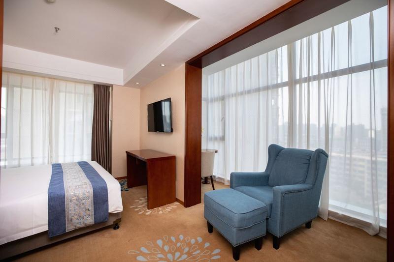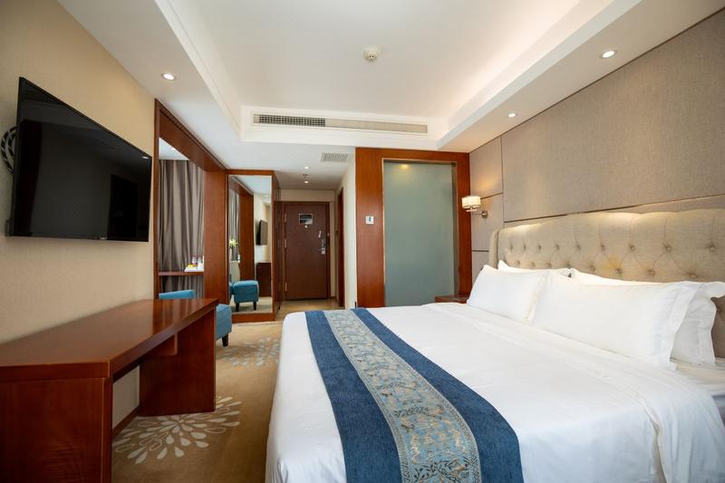 酒店距离华润万象城、丹尼斯大卫城、新田360购物中心、大上海城、德化步行街、世贸大户批发城、地标建筑(二七塔)、郑大一附院等热门商圈很近。酒店近轨道交通3号线、1号线。 酒店集商务会议,餐饮为一体的国际化高端商务酒店。酒店层高24层,拥有豪华客房、套房;房间装修精致,舒适宽敞并配备高品质客房设施,包括大型停车场、自助早餐厅、自助洗衣房、健身房、大堂吧、雅典餐厅,商务中心等设施,让客人充分体验酒店的豪华与舒适。 酒店配备3个会议室:220平中联厅、100平、150平多功能会议室。作为郑州市二七区商圈的一家豪华型酒店,我们以完善的配套设施,优越的地理位置,专业的酒店服务让您的旅途温馨愉悦!