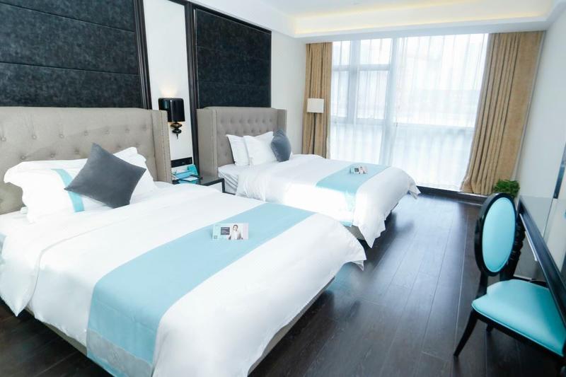 酒店地处郑东新区心怡路与东站南街交叉口,紧邻郑州市高铁站西广场、地铁1号线出口,距市中心约12分钟车程,出行便利。 酒店客房布置时尚摩登轻奢、优雅经典。一杯花茶、一个私密空间和各种宠爱自我的细节体现,让你纵享精致优雅的小资时刻。房间设施设备齐全,无线WiFi让您商务休闲两不误。