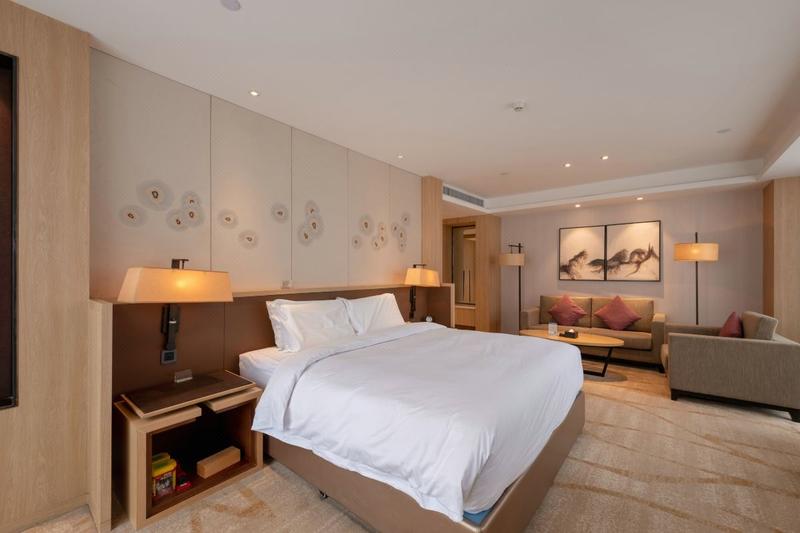 璞华酒店(郑州高铁站店)矗立郑州东站高端商务区,周边坐拥郑州市地标建筑双子塔,距离郑州CBD国际会展中心车程约15分钟,立于繁华,交通便利。 酒店设有多种豪华客房,房内均配有美国KINGKOIL(金可儿)床垫、无线WIFI、高速宽带、大屏幕LED电视、卫生间干湿分离、国际品牌洁具、景德镇订制茶具、迷你吧、茶叶、咖啡等、行政大床房及套房配有宽大浴缸。 酒店配套有河南传统特色餐饮(惠丰源品牌烩面旗舰店)、具有苏州园林风格的璞园茶餐厅、棋牌、养生足疗、健身房等设施一应俱全。酒店还提供礼宾、旅游、擦鞋、停车、叫车、行李寄存、会议、高铁东站免费接送等服务(详情请咨询商家)。