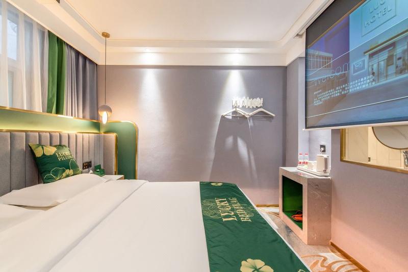 酒店是河南阳米实业有限公司旗下中高端酒店品牌,由国际知名设计师执笔,集“复合共享大堂、轻奢生活方式、AI智能客控”为一体,为都市精英者带来高品质的入住体验。 住在这里很“炫酷”,刷脸开门、机器人送物、看电视不用遥控器,连空调、灯光、窗帘都可以用语音控制。住在四叶草很“奢宠”,7:00-11:00超长早餐、现磨咖啡、中西各色糕点、精致下午茶、自助洗衣、健康按摩床垫、免费宵夜,24小时书咖。 走进本店,与幸运邂逅,流星厅下许愿、LUCK BOX中惊喜,倡导年轻随性、积极向上的生活方式理念,打造都市精英新领地。 LUCK 随心随遇,去生活!