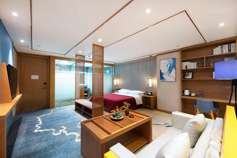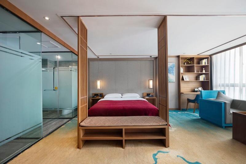 酒店地处航海路二七万达商圈,交通便利,商业配套齐全。酒店距地铁5号线后河芦站C2出口约600米;毗邻二七万达广场、华润万家、第二人民医院、帝湖公园、73中学;距帝湖公园约800米、步行约5分钟;距华润万家、73中学约500米,二七万达、第二人民医院约2.8公里,距中原万达约3.8公里。 酒店配备地下停车场、会议室、多功能厅等,客房采用中式风格设计,坚持回归纯粹的生活原则,部分房间运用大量科技理念,设计新颖、宽敞舒适,精心挑选国内知名品牌床垫,更配有轻柔亲肤自然床品、生物保 健睡枕、知名卫浴设施,国际名牌中央空调,在这里无论独处、玩聚、还是商务小憩都能得到非一般的惊喜和体验。